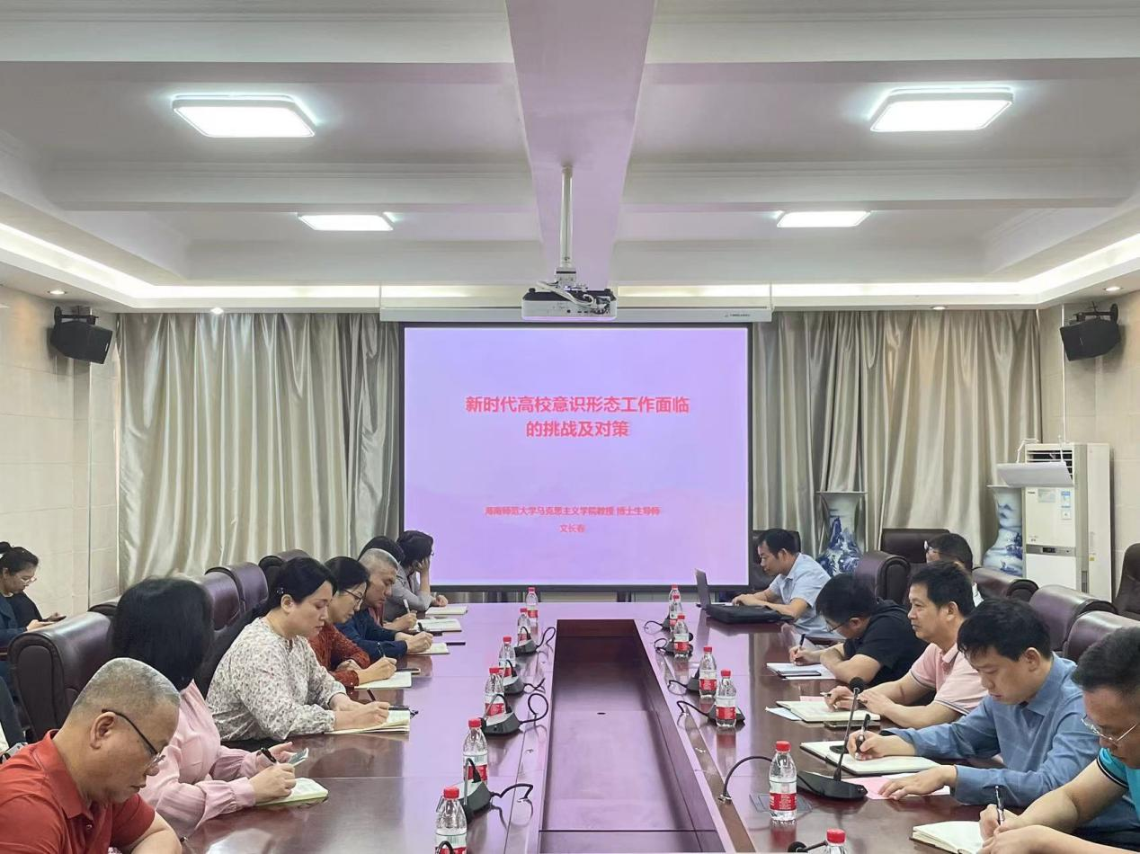 讲座由我校马克思主义学院博士研究生导师文长春教授主讲,文教授以《新时代高校意识形态工作面临的挑战及对策》为题,深刻分析了新时代中国面临的世界形势,从东西方意识形态斗争的由来及演变、我国当前面临的意识形态渗透挑战、加强意识形态工作的重要性与紧迫性、高校意识形态工作面临的挑战和高校辅导员意识形态工作能力提升路径等五个方面进行了深入浅出的讲解。