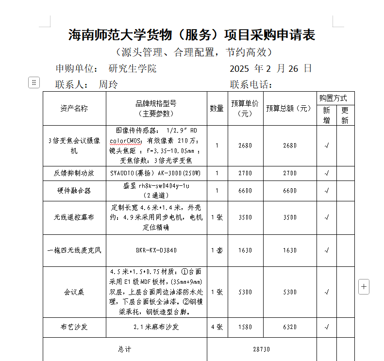 关于采购设备和家具的公示