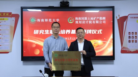 3月12日上午,我校与海南国源土地矿产勘测规划设计院有限公司(简称国源院)在国源院三楼会议室隆重举行研究生联合培养基地授牌仪式,我校雷竞技王者荣耀吧副院长王向辉、地理学院副院长邱彭华带队出席了此次活动,国源院执行董事兼总经理陈传钊主持会议。