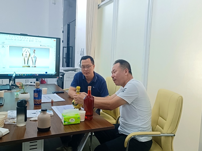 鲍青海充分肯定了设计团队的辛苦付出,并介绍山栏酒传统陶缸发酵与现代无菌灌装结合的工艺特色,双方达成项目推进共识:优先完成酒瓶设计定稿,同步深化景观改造方案。该项目将作为设计学科实践教学案例,推动研究生参与从概念设计到落地的全流程,以设计赋能提升产品品牌辨识度。