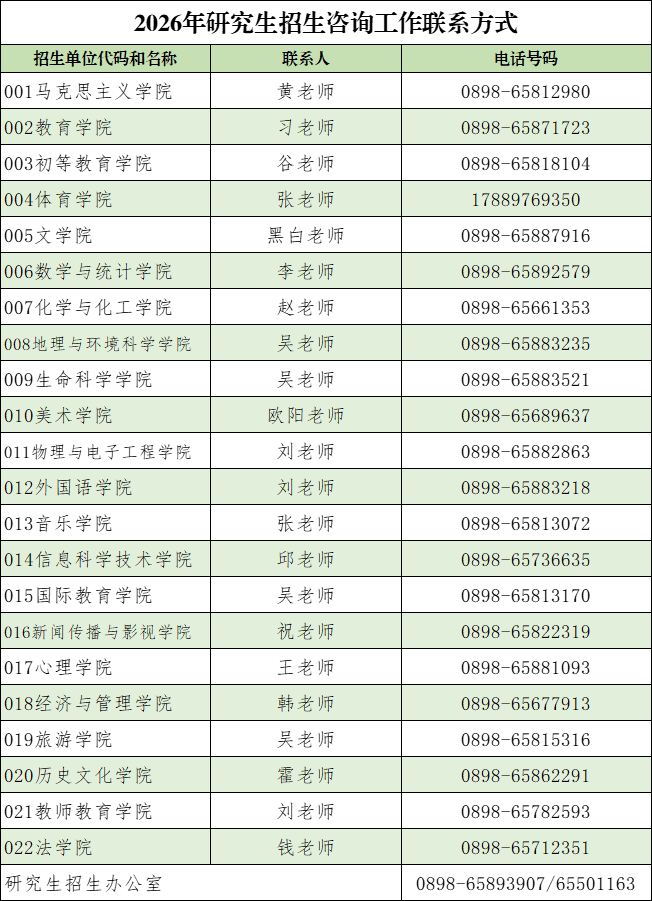 各学院联系方式: